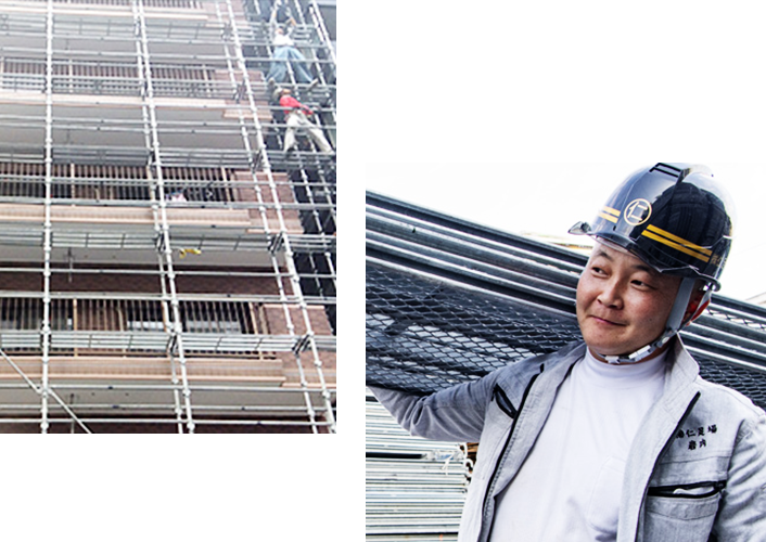 お客様と近隣にお住まいの方々に不快感をあたえることは一切いたしません。関東、千葉の足場工事なら「仁足場」にお任せください。
